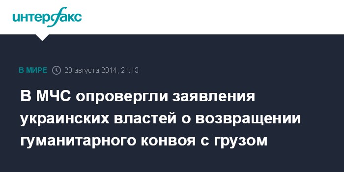 Москва. 23 августа. INTERFAX.RU - В МЧС России заявили, что недоумевают в связи с заявлением украинских властей о том, что российская колонна после доставки гуманитарной помощи в Луганск якобы вернулась в Ростовскую область с грузом.