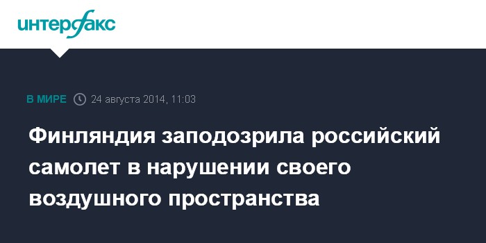 Москва. 24 августа. INTERFAX.RU - В Финляндии подозревают, что российский военный самолет нарушил воздушное пространство страны.