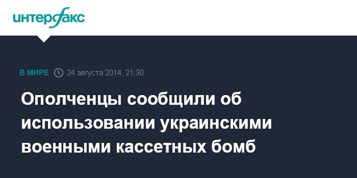 Москва. 24 августа. INTERFAX.RU - Украинские военные применили запрещенные боеприпасы кассетного типа, заявили в штабе ополчения в Донецке.