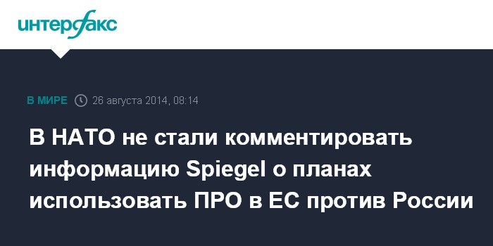 Отвечая на вопрос о появившемся на сайте германского журнала Der Spiegel сообщении, что представители стран Балтии и Польши обратились к НАТО с предложением нацелить систему ПРО в Европе против России, он сказал: "Мы не комментируем предполагаемых утечек".