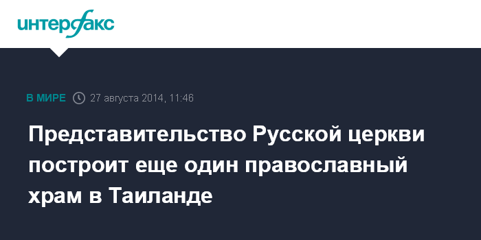Москва. 27 августа. INTERFAX.RU - Представительство Русской церкви в Таиланде приобрело участок земли для строительства храма в городе Чиангмай на севере королевства.