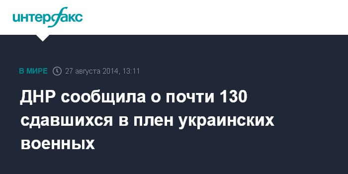 Москва. 27 августа. INTERFAX.RU - По данным штаба ополчения ДНР, в районе Старобешево сдалась в плен группа из 129 украинских военнослужащих и бойцов национальной гвардии.