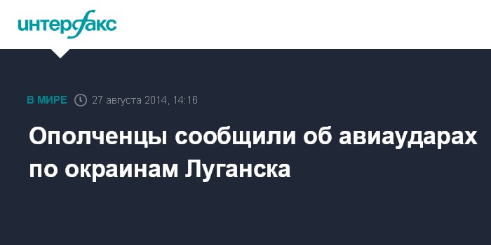 Москва. 27 августа. INTERFAX.RU - Украинские ВВС в ночь на среду нанесли несколько авиаударов по западным окраинам Луганска, сообщили "Интерфаксу" в штабе ополчения Луганска в четверг.