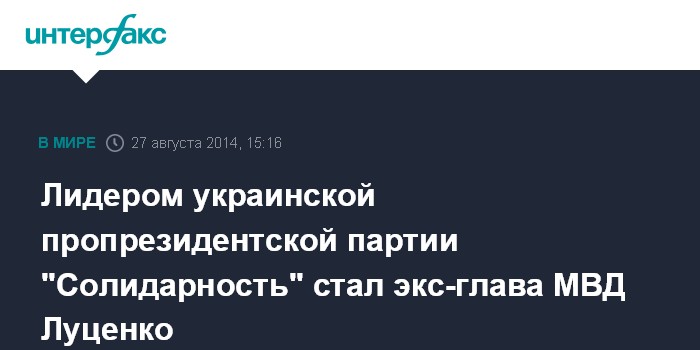 Москва. 27 августа. INTERFAX.RU - Лидер гражданского движения "Третья украинская республика", экс-министр внутренних дел Юрий Луценко стал новым руководителем политической партии "Солидарность".