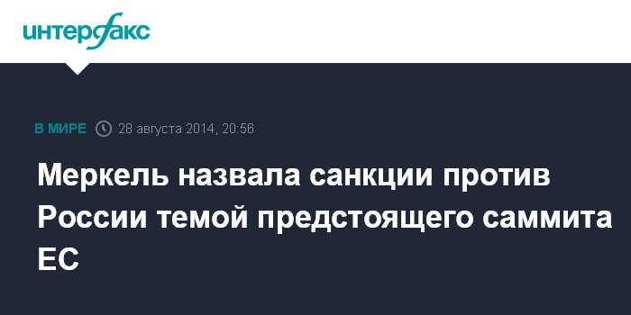 Москва. 28 августа. INTERFAX.RU - Главы государств и правительств обсудят на саммите ЕС ухудшение ситуации на востоке Украины и возможное введение дополнительных ограничительных мер в отношении России, отметила в четверг канцлер ФРГ Ангела Меркель.