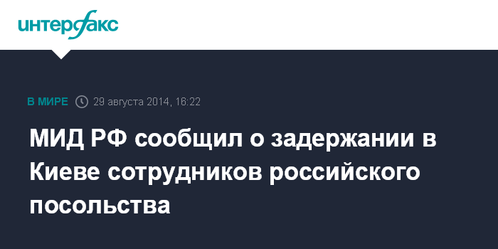 Москва. 29 августа. INTERFAX.RU - Москва требует незамедлительного освобождения задержанных накануне сотрудников посольства РФ на Украине, заявили в МИД России.