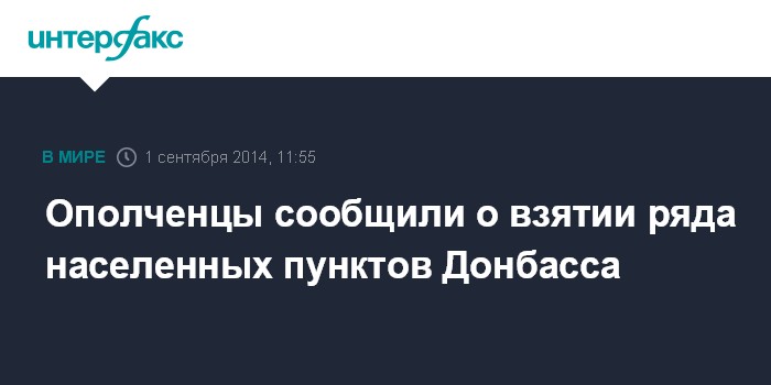Москва. 1 сентября. INTERFAX.RU - Ополченцы установили контроль над рядом населенных пунктов Донецкой области, сообщает агентство "Новороссия" в понедельник.