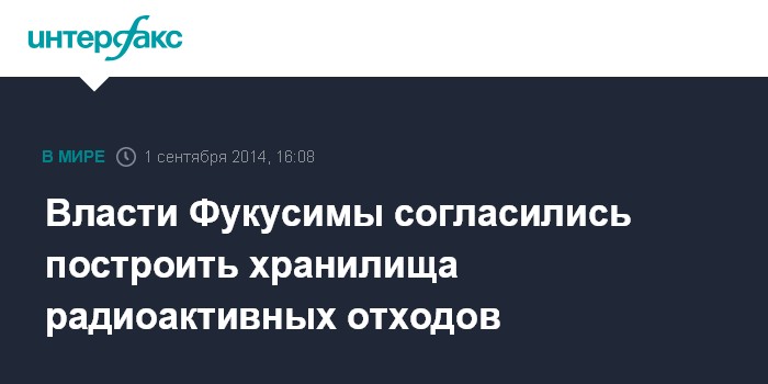 Москва. 1 сентября. INTERFAX.RU - Губернатор префектуры Фукусима Юхэй Сато одобрил план центрального правительства по постройке на территории префектуры временных хранилищ для высокорадиоактивных отходов, образовавшихся в результате ликвидации последствий аварии на АЭС "Фукусима-1", сообщает телеканал NHK.