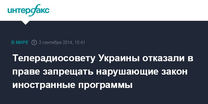 Москва. 2 сентября. INTERFAX.RU - Нацсовету Украины по телерадиовещанию отказали в праве запрещать ретрансляцию иностранных программ, нарушающих украинский закон, передает корреспондент "Интерфакса". Соответствующее решение приняла Верховная рада.