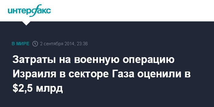Москва. 2 сентября. INTERFAX.RU - Военная операция в секторе Газа, длящаяся в течение 50 дней, обошлась израильским властям в $2,5 млрд, сообщил во вторник министр обороны Израиля Моше Яалон.