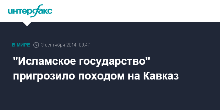 Москва. 3 сентября. INTERFAX.RU - Боевики радикальной исламской группировки "Исламское государство" пригрозили начать войну в Чечне и на Кавказе, сообщает телеканал "Аль-Арабийя".