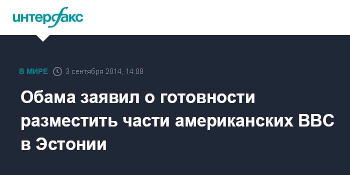 Ранее 27 августа министр обороны Эстонии Свен Миксер заявил о заинтересованности Таллина в том, чтобы на саммите НАТО в Уэльсе 4-5 сентября было принято решение об увеличении военного присутствия в стране. "Так как новая ситуация в безопасности сохранится надолго, Эстония желает, чтобы военное присутствие США в нашей стране продолжилось", - сказал Миксер. По его словам, "наша цель - обеспечить защиту Эстонии от любых внешних угроз и потому в нашем регионе необходимо усилить меры сдерживания".