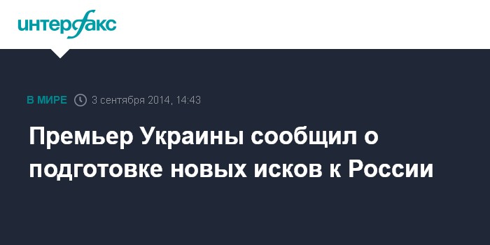 Москва. 3 сентября. INTERFAX.RU - Кабинет министров Украины и Верховная Рада одобрили законопроект о введении секторальных санкций в отношении России, теперь правительство Украины намерено подать новые иски к РФ, заявил премьер-министр страны Арсений Яценюк.