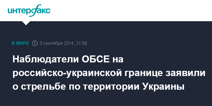 Москва. 3 сентября. INTERFAX.RU - Наблюдатели ОБСЕ впервые зафиксировали стрельбу в сторону Украины с российской территории близ контрольно-пропускного пункта ''Донецк'' (РФ), заявили в наблюдательной миссии ОБСЕ.
