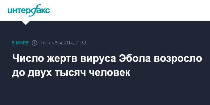 Москва. 3 сентября. INTERFAX.RU - Вспышка лихорадки Эбола в Западной Африке унесла жизни более 1,9 тыс. человек, заявила в среду на пресс-конференции глава Всемирной Организации Здравоохранения (ВОЗ) Маргарет Чан.