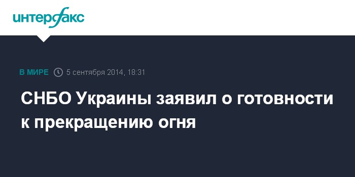 Москва. 5 сентября. INTERFAX.RU - Украинские военные подразделения, проводящие силовую операцию востоке страны, готовы к прекращению огня в соответствии с приказом президента Украины Петра Порошенко, заявляет спикер Информационно-аналитического центра СНБО Андрей Лысенко.