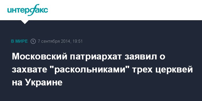 Московский патриархат заявил о захвате "раскольниками" трех церквей на Украине