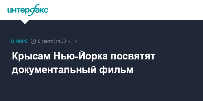 Москва. 8 сентября. INTERFAX.RU - О крысах Нью-Йорка снимут документальный фильм, сообщает The Hollywood Reporter. Проект был анонсирован во время Международного кинофестиваля в Торонто.