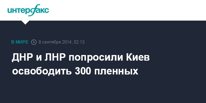 Москва. 9 сентября. INTERFAX.RU - Представители самопровозглашенных ДНР и ЛНР просят освободить более 300 военнопленных. Об этом заявили в службе безопасности Совета национальной безопасности Украины.