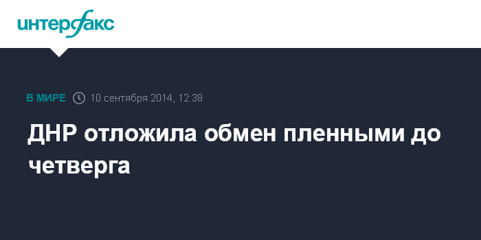 Москва. 10 сентября. INTERFAX.RU - Как заявил журналистам представитель министерства обороны самопровозглашенной Донецкой народной республики, запланированный на среду обмен пленными с Украиной переносится на четверг без объяснения причин.