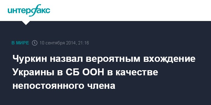 Москва. 10 сентября. INTERFAX.RU - У Украины есть хорошие перспективы стать непостоянным членом Совета безопасности ООН на 2016-2017 годы, заявил постпред РФ при ООН Виталий Чуркин в эфире телеканала "Россия 24".
