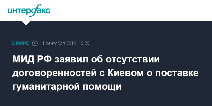 Москва. 11 сентября. INTERFAX.RU - Москва. 11 сентября. INTERFAX.RU - В Москве констатировали отсутствие в настоящий момент договоренностей с Киевом, которые бы позволили в ближайшие дни направить конвой с российской гуманитарной помощью на юго-восток Украины.