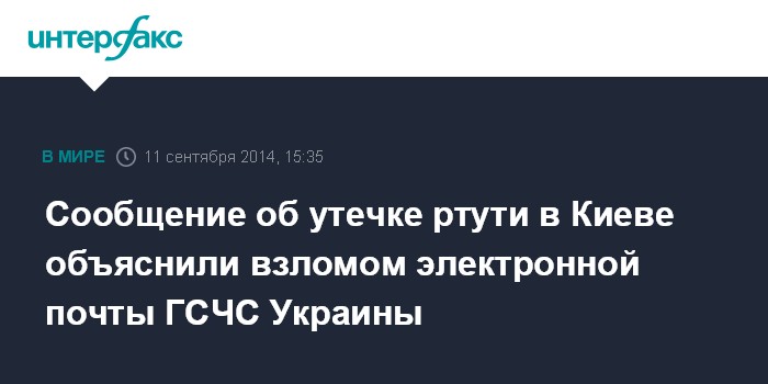 Сообщение об утечке ртути в Киеве объяснили взломом электронной почты ГСЧС Украины