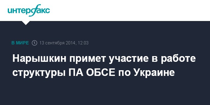 Нарышкин примет участие в работе структуры ПА ОБСЕ по Украине