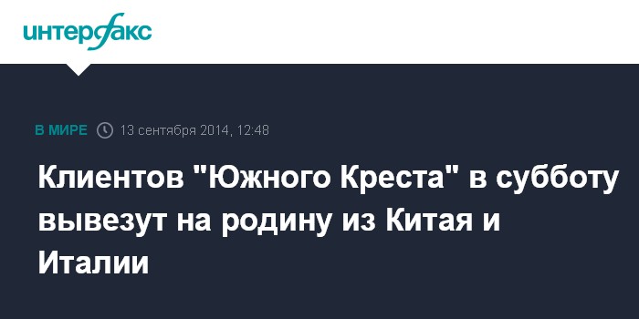 Ранее на родину благодаря вмешательству Росавиации, Ростуризма и российского МИД был организован еще один вывозной рейс с острова Хайнань. Таким образом, за два дня (12-13 сентября) Китай покинули 627 туристов - клиенты "Южного Креста".