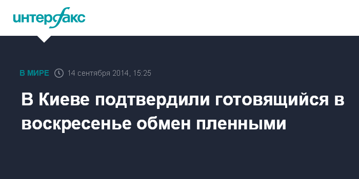 Москва. 14 сентября. INTERFAX.RU - В Совете по национальной безопасности и обороне Украины подтверждают, что в воскресенье состоится очередной обмен пленными с ополченцами, но подробности не сообщают.