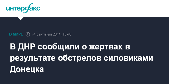 Москва. 14 сентября. INTERFAX.RU - В министерстве обороны самопровозглашенной "Донецкой народной республики" (ДНР) заявляют, что артиллерийским ударам с позиций украинских силовиков подверглись Киевский и Кировский районы Донецка.