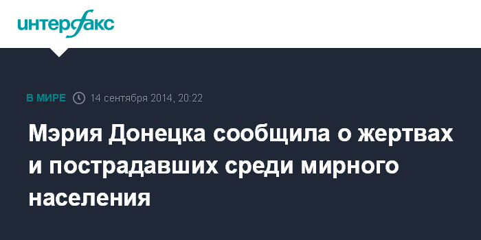 Москва. 14 сентября. INTERFAX.RU - В Донецке продолжаются артобстрелы Куйбышевского и Киевского районов, есть жертвы и пострадавшие среди мирного населения, сообщает сайт мэрии.