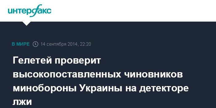 Москва. 14 сентября. INTERFAX.RU - Министр обороны Украины Валерий Гелетей намерен проверить около 30 чиновников возглавляемого им ведомства на детекторе лжи.