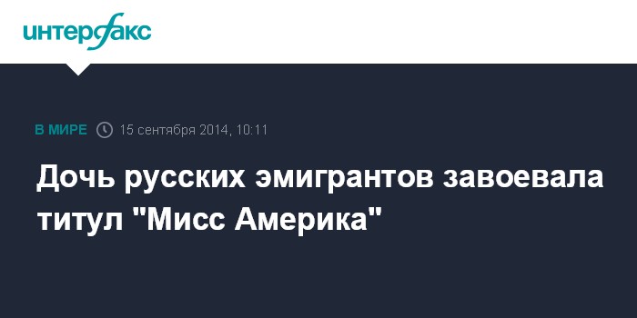 Москва. 15 сентября. INTERFAX.RU - Титул "Мисс Америка 2015" завоевала 23-летняя дочь русских эмигрантов Кира Казанцев, сообщает The New York Daily News. Таким образом корона третий раз подряд досталась победительнице конкурса "Мисс Нью-Йорк".