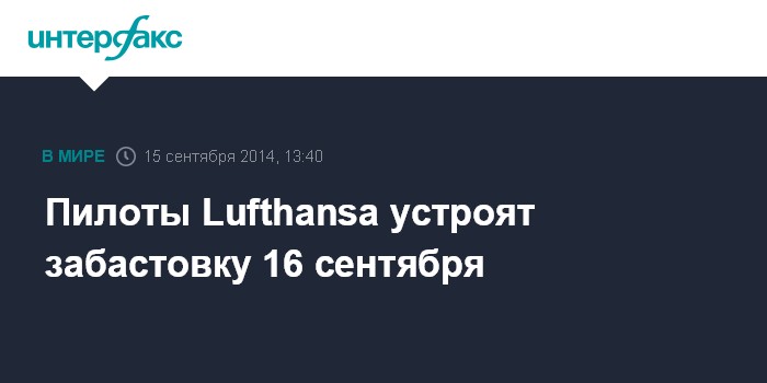 Пилоты Lufthansa устроят забастовку 16 сентября