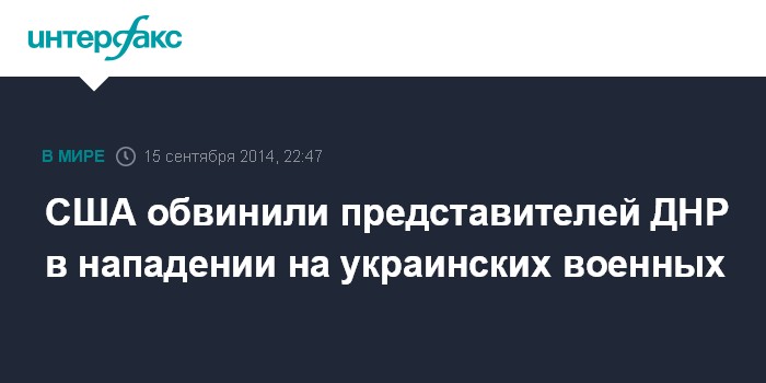 Москва. 15 сентября. INTERFAX.RU - Власти США осуждают нападения вооруженных формирований в Донбассе на украинских военных, совершенные в минувшие выходные на востоке Украины. Об этом заявила представитель Госдепа США Мари Харф.