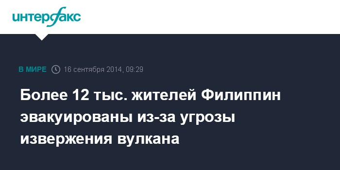 Москва. 16 сентября. INTERFAX.RU - Власти Филиппин эвакуировали более 12 тысяч человек, живущих близ вулкана Майон, из-за риска скорого извержения, сообщили во вторник в Филиппинском институте вулканологии и сейсмологии.