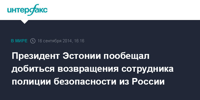 Президент Эстонии пообещал добиться возвращения сотрудника полиции безопасности из России