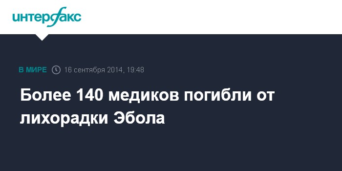 Москва. 16 сентября. INTERFAX.RU - Количество жертв вируса лихорадки Эбола в Западной Африке приближается к 2,5 тысячам, сообщает Роспоребнадзор во вторник со ссылкой на министерства здравоохранения пяти африканских стран. По данным ведомства, число заболевших среди медперсонала также увеличивается: заболел 301 врач, из них 144 погибли.