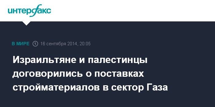 Москва. 16 сентября. INTERFAX.RU - Власти Израиля и представители палестинского движения ХАМАС при посредничестве ООН достигли соглашения о ввозе стройматериалов в сектор Газа для восстановления разрушенной инфраструктуры, сообщает во вторник межарабский телеканал Al Arabiya со ссылкой на заявление спецкоординатора ООН по Ближнему Востоку Роберта Серри.
