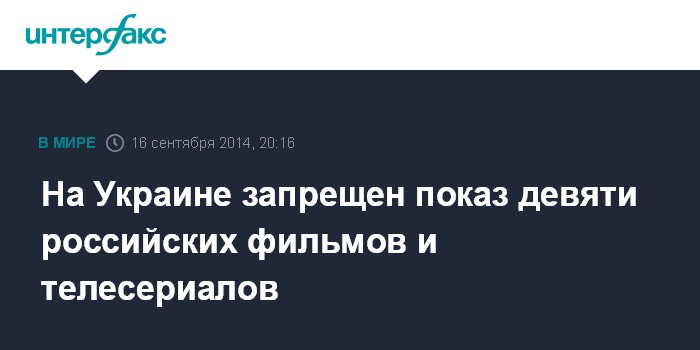 На основании выводов экспертной комиссии по вопросам публичного демонстрирования и распространения кино- и видеофильмов Госкино Украины 16 сентября отменило госрегистрацию или отказало в ней таким российским картинам, как документальный фильм "Фальшивая армия. Великая афера полковника Павленко "(реж. А.Грачев, 2009 год), "Второй убойный" (реж. С.Власов, 2013 год), "Зимний круиз" (реж. И.Нурисламов, 2012 год), "Честь самурая" (реж. Н.Якушева, 2012 год), "Разреши тебя поцеловать снова" (реж. Ю.Морозов, 2012 год), "Ментовские войны 7" (реж. С.Раевський, 2013 год), "Отдельное поручение" (реж. Д.Аверин, 2012 год), "Ментовские войны 4" (реж. Е.Абросимов, 2013 год), "Просто Джексон" (реж. Л.Пляскин, 2012 год).