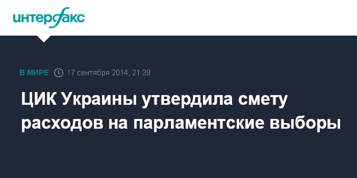 Москва. 17 сентября. INTERFAX.RU - Центральная избирательная комиссия Украины утвердила смету расходов на внеочередные парламентские выборы в сумме 957,8 млрд грн. Соответствующее решение было принято на заседании ЦИК в среду.