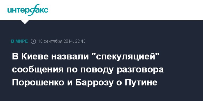 Москва. 18 сентября. INTERFAX.RU - В администрации президента Украины не подтвердили информацию о том, что Петр Порошенко пересказал президенту Еврокомиссии Жозе Мануэлю Баррозу разговор с российским лидером Владимиром Путиным, в котором тот якобы резко высказался в адрес ряда европейских столиц.