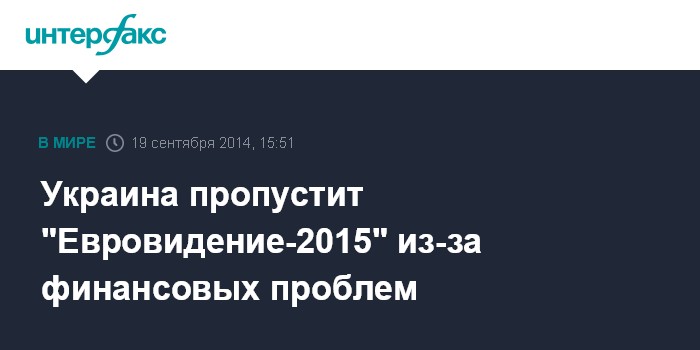 Москва. 19 сентября. INTERFAX.RU - Национальная телекомпания Украины (НТКУ) в двусторонней договоренности с Европейским вещательным союзом приняла решение отказаться от участия в песенном конкурсе "Евровидение-2015".