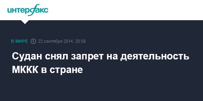 Москва. 22 сентября. INTERFAX.RU - Власти Судана отменяют временный запрет на работу сотрудников Международного комитета красного креста (МККК) в регионах страны, говорится в заявлении МККК, распространенном в понедельник.