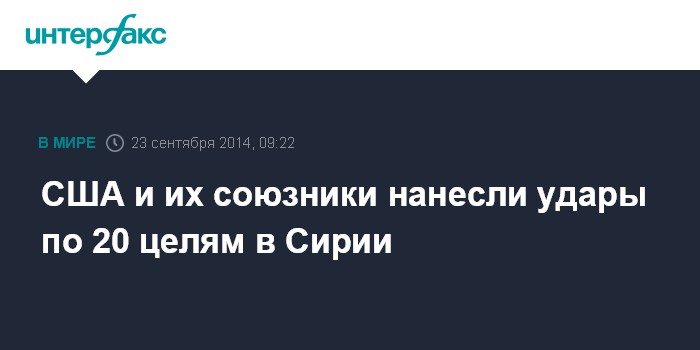 Москва. 23 сентября. INTERFAX.RU - Военно-воздушные силы США и некоторых их союзников по борьбе против группировки "Исламское государство" уже нанесли удары по 20 объектам боевиков в Сирии, сообщает во вторник BBC.