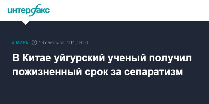 Москва. 23 сентября. INTERFAX.RU - В Китае ученого уйгурского происхождения Ильхама Тохти приговорили к пожизненному заключению, сообщает BBC News. Он был признан виновным в сепаратизме.