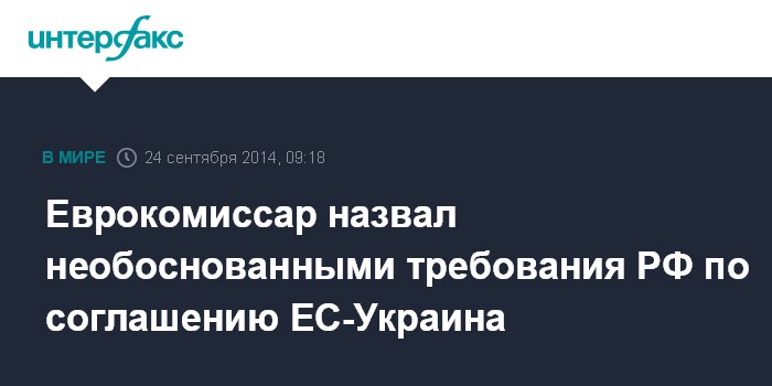 Еврокомиссар назвал необоснованными требования РФ по соглашению ЕС-Украина