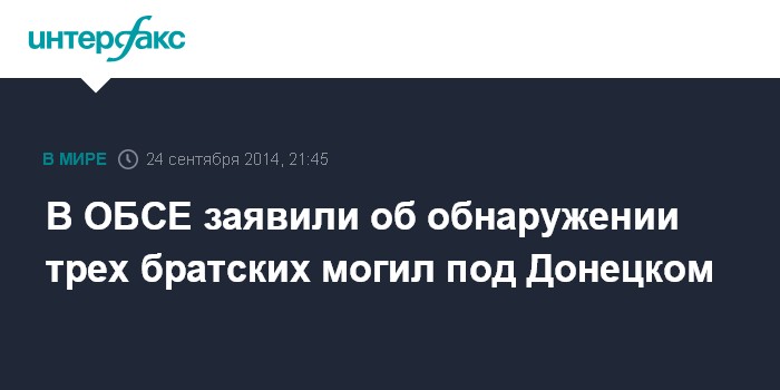 Москва. 24 сентября. INTERFAX.RU - Группа наблюдателей ОБСЕ на Украине нашла три места массового захоронения под Донецком, говорится в докладе, опубликованном в среду на сайте организации.