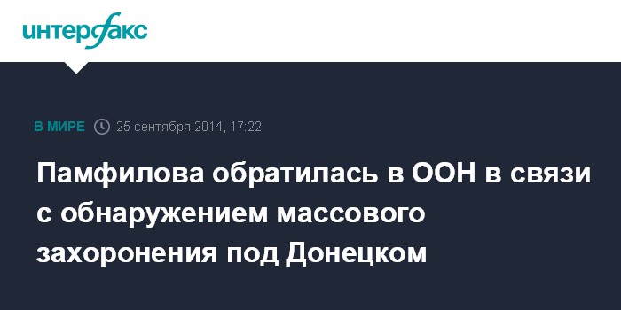 Памфилова обратилась в ООН в связи с обнаружением массового захоронения под Донецком